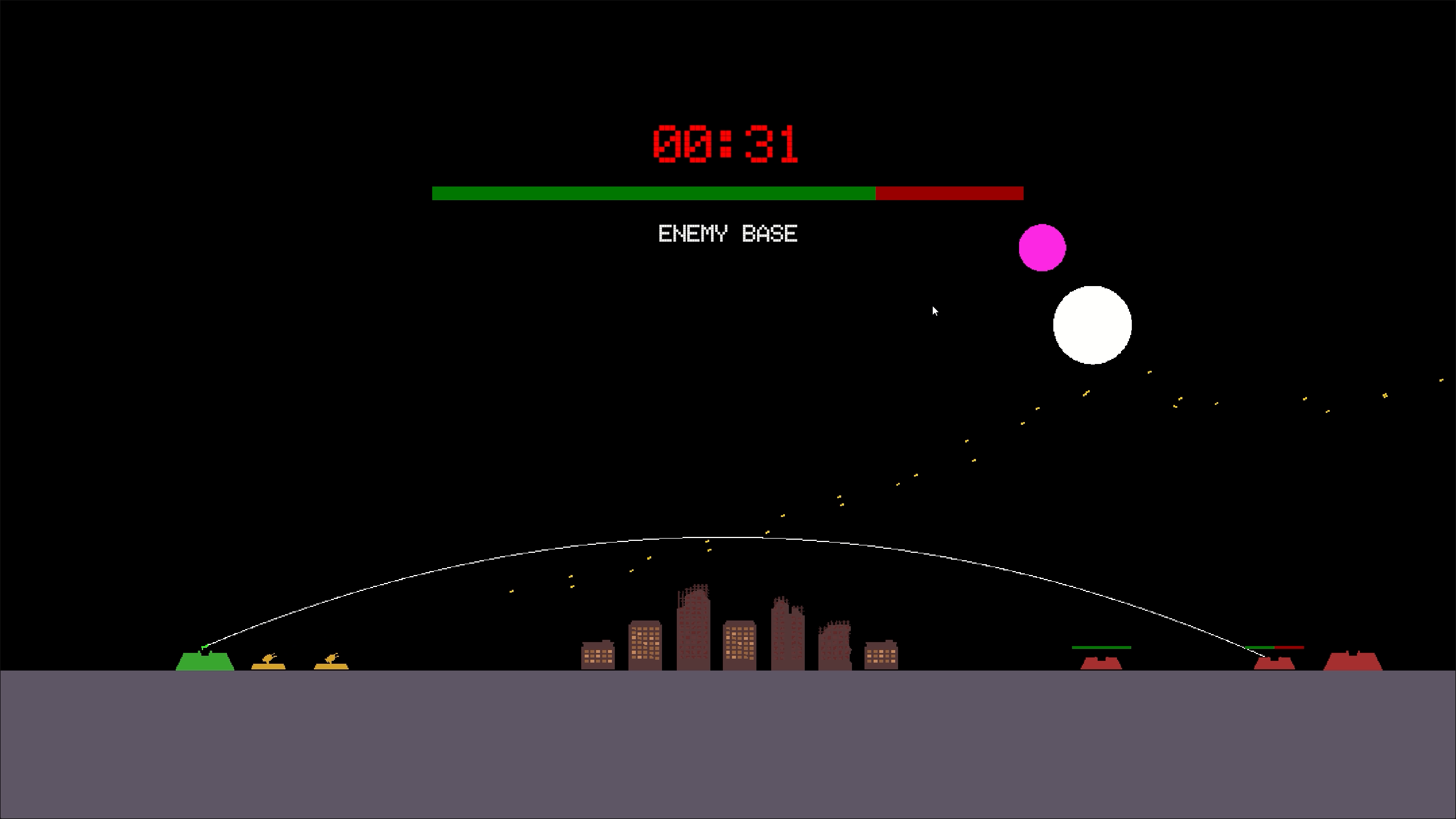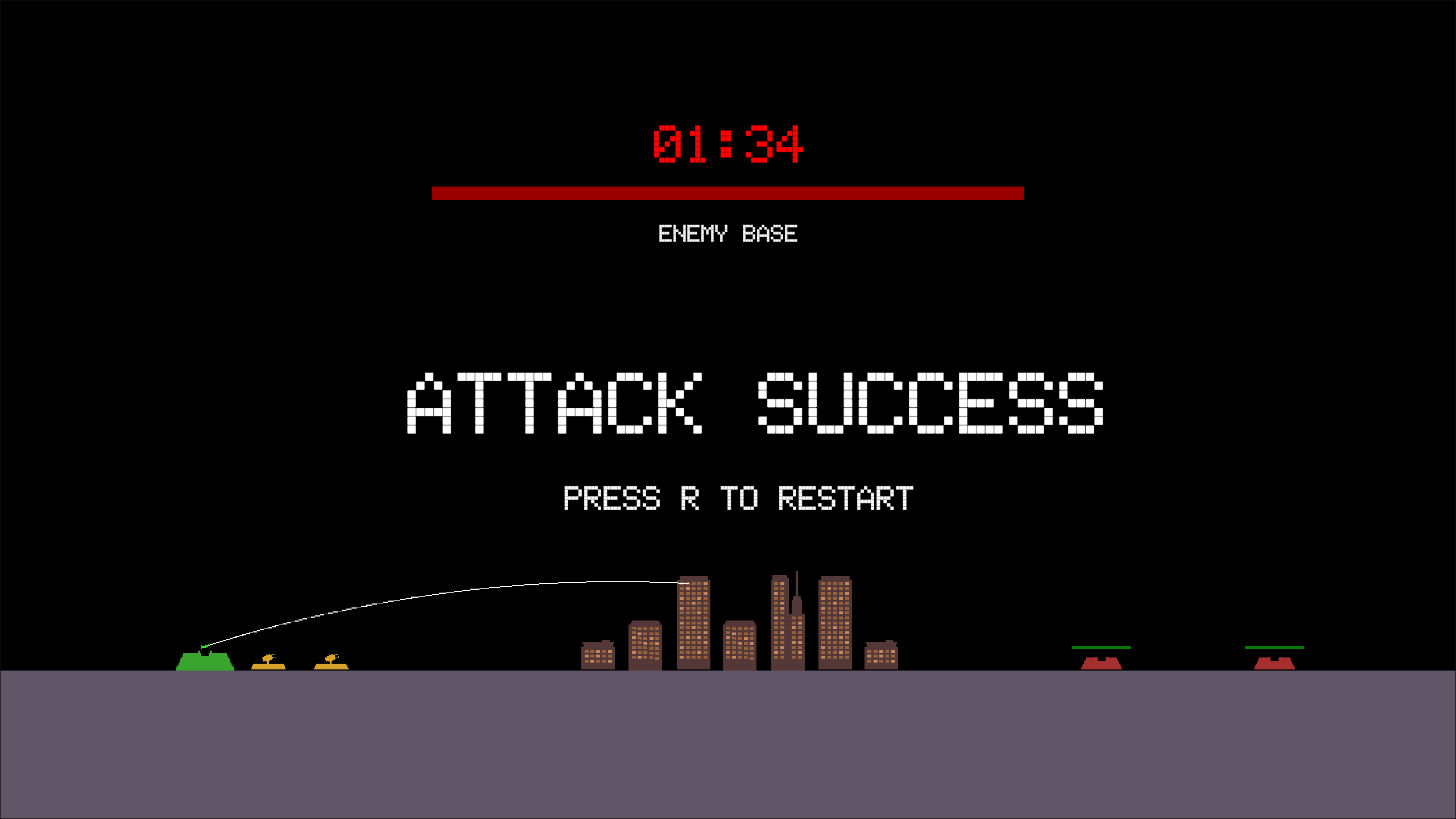 Your objective is to destroy the enemy base (the bigger target) by firing missiles onto it, or optionally, destroy enemy missile emplacements. It's your choice.